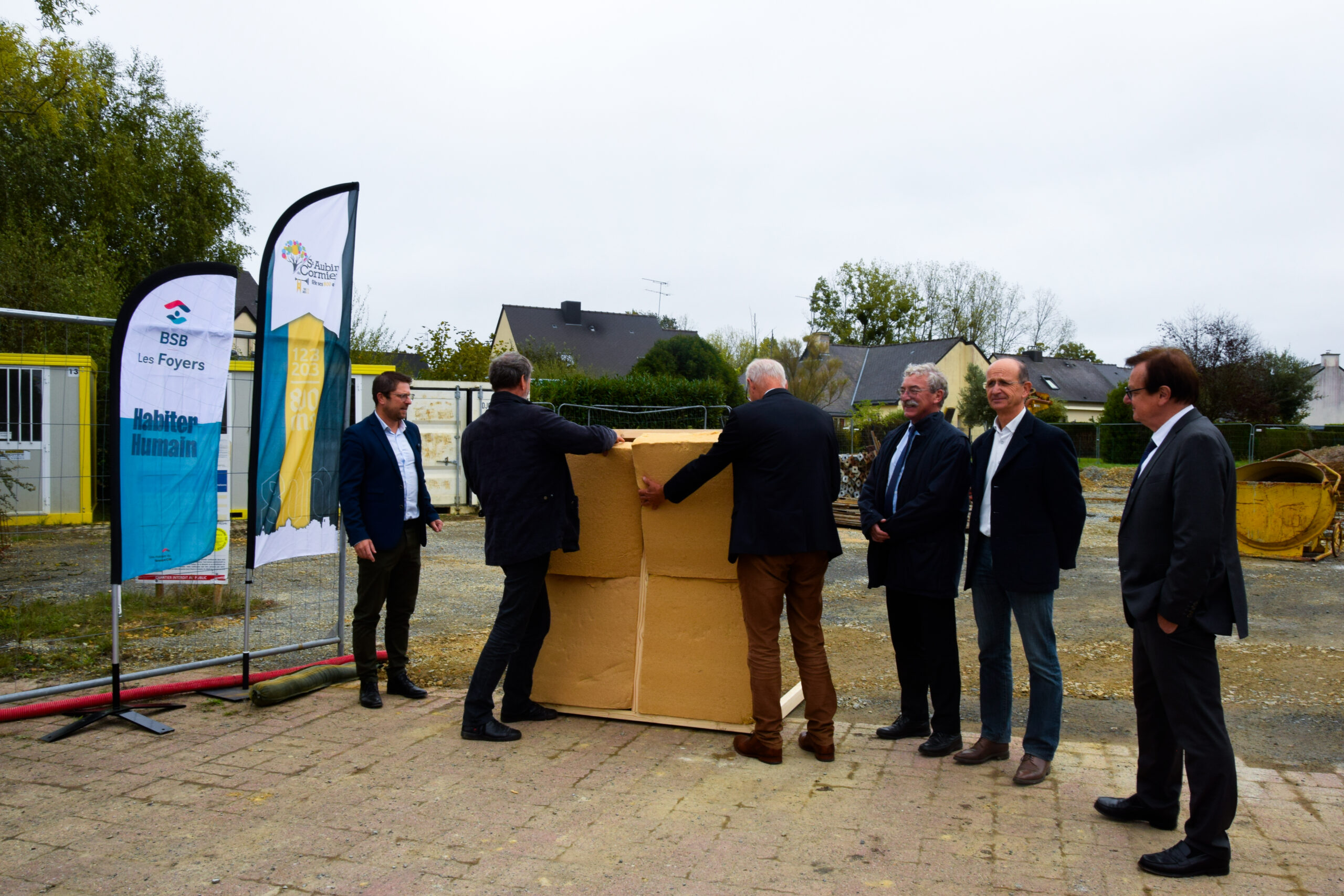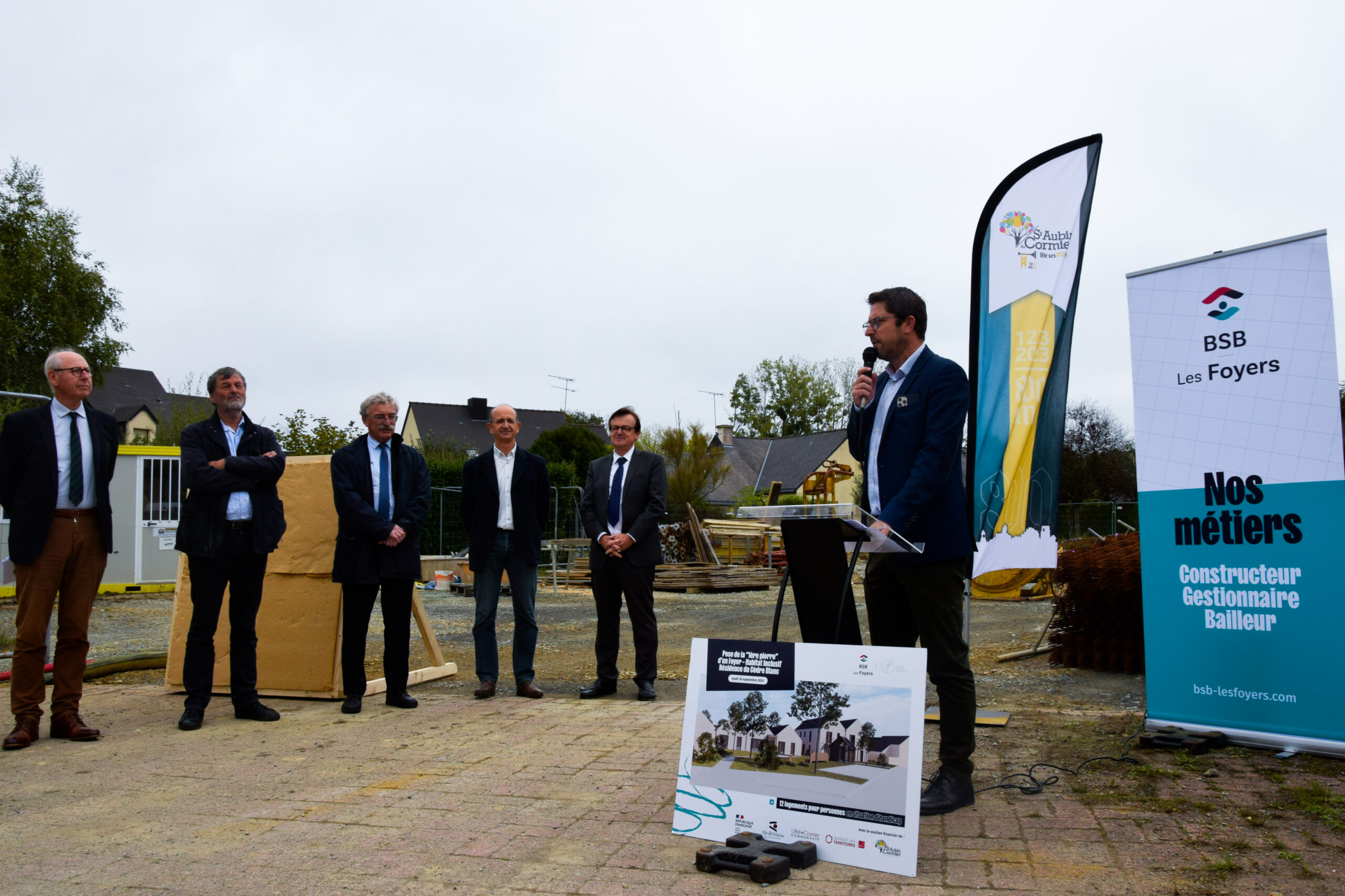 À Saint-Aubin-du-Cormier, la « première pierre » de la résidence inclusive, place de l’Europe, a été posée, marquant le début d’un projet porteur de valeurs fortes : autonomie, dignité et inclusion.