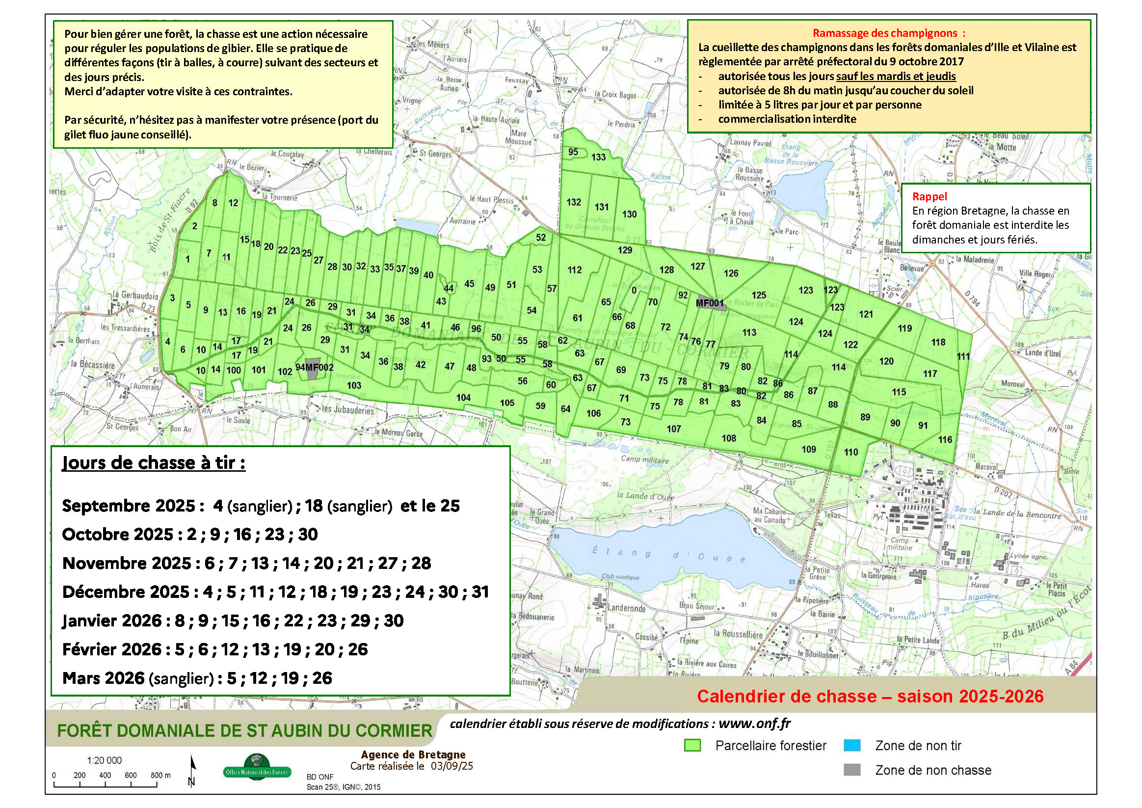 Calendrier jours de chasse forêt domaniale de Saint-Aubin-du-Cormier