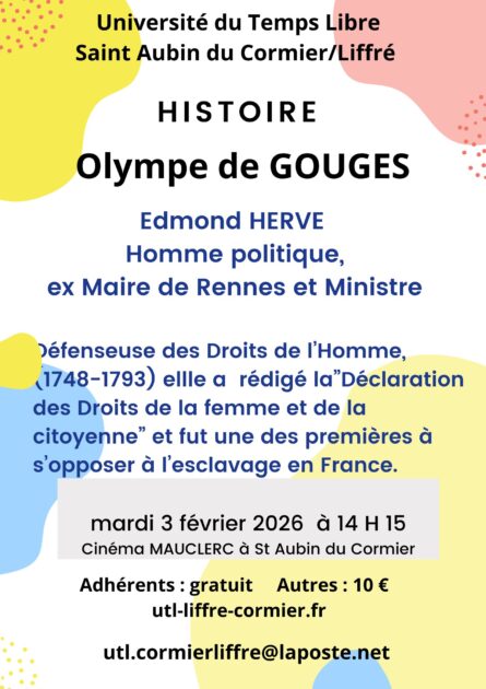 L’Université du Temps Libre (UTL) vous propose une conférence sur Olympe de Gouges.