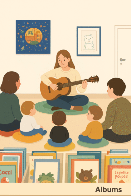 David Martin, Ă©ducateur de jeunes enfants et musicien, passionnĂ© par la culture de Haute-Bretagne, anime cette sĂ©ance chantĂ©e de comptines en français et en gallo pour les tout-petits… et les plus grands aussi !
