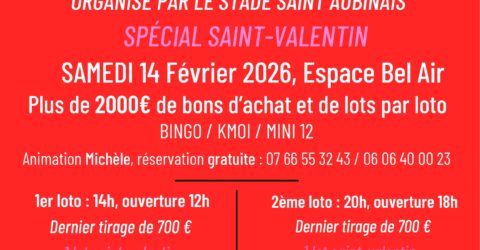 🗓️Samedi 14 février 🕛 1er loto à 14h (ouverture dès 12h)🕗 2ᵉ loto à 20h (ouverture dès 18h) 📍Espace...